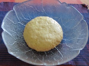 4 உப்பி வந்த மாவை 2 நிமிஷங்கள் சேர்த்துப் பிசையவும். ஒரு