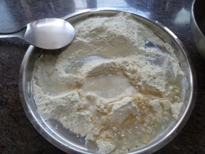 தாம்பாளத்திலோ தட்டிலோ சேர்த்துக் கலக்கவும்.