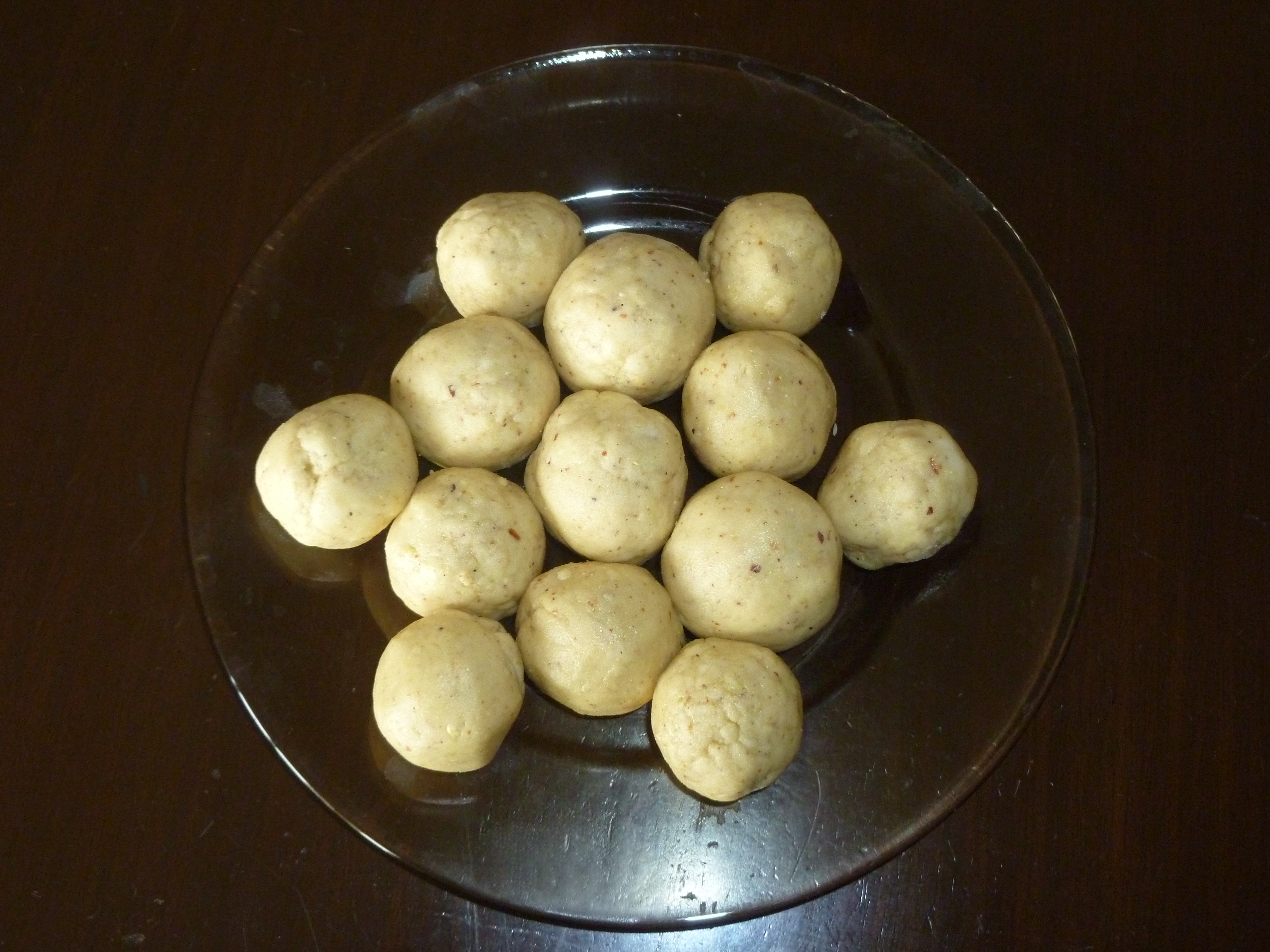 அழுத்தமாக சேர்த்து கெட்டியான உருண்டைகள் பிடிக்கும்