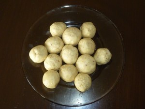சற்று சூடாகவே இருக்கும் போது லட்டைப் பிடிக்கவும்.
