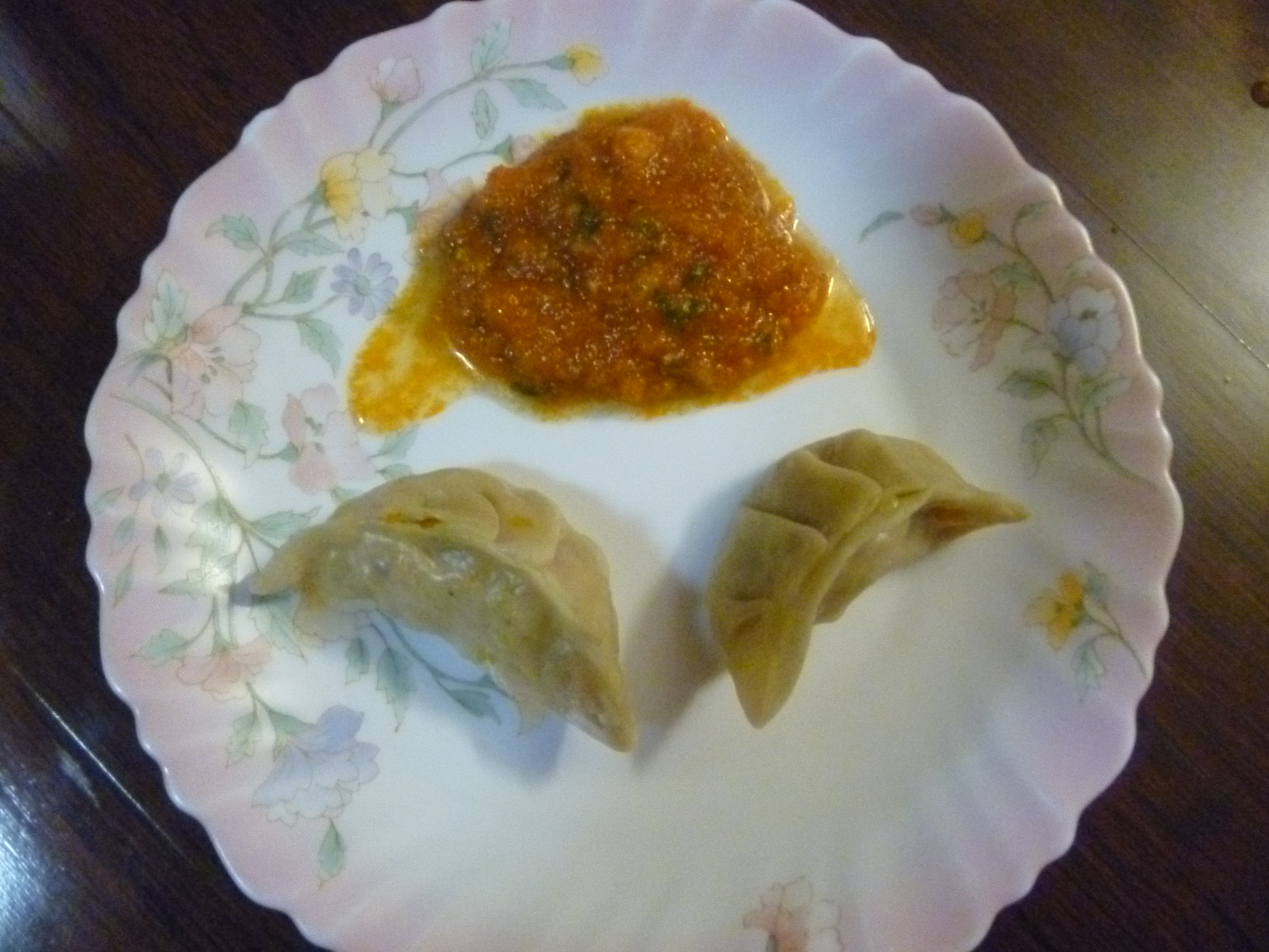 ஆவியில்  வேக வைக்காது  ,வாணலியில்   எண்ணெய் வைத்துப் பொரித்தால் அதுவும் ருசியாக இருக்கும்.எல்லா வகைகளுடனும்  நேபாளிகள் இந்தக் காரசாரமான அசார்தான செய்வார்கள்.நமக்குப் பூண்டு பிடிக்காதென்றால்   நம்முடைய ஏதாவது சட்னி செய்தால் போயிற்று.  தேங்காய் பூரணமும் வைத்துச் செய்யலாம்.  அரிசிமாவில் பண்ணும் நமக்கு இப்படியுமா என்று தோன்றும்  .உலகம் பலவித ருசிகளில்  திளைக்கிறது.   கொஸ்தோ ச ஹஜூர். எப்படி இருக்கிறது. குக் கேட்கிறான். மீடோ ச.. மிகவும் நன்றாக இருக்கிறது. பிள்ளை சொல்லவே   மழைக்கு அச்சேறுகிறது.   பாருங்கள். முதல்படம்  பொரித்த  மோமோக்கள்.