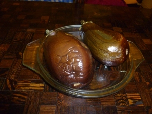 செய்முறை—–அலம்பித் துடைத்த கத்தரிக்காயின் மேல் இலேசாகஎண்ணெயைத் தடவவும்.