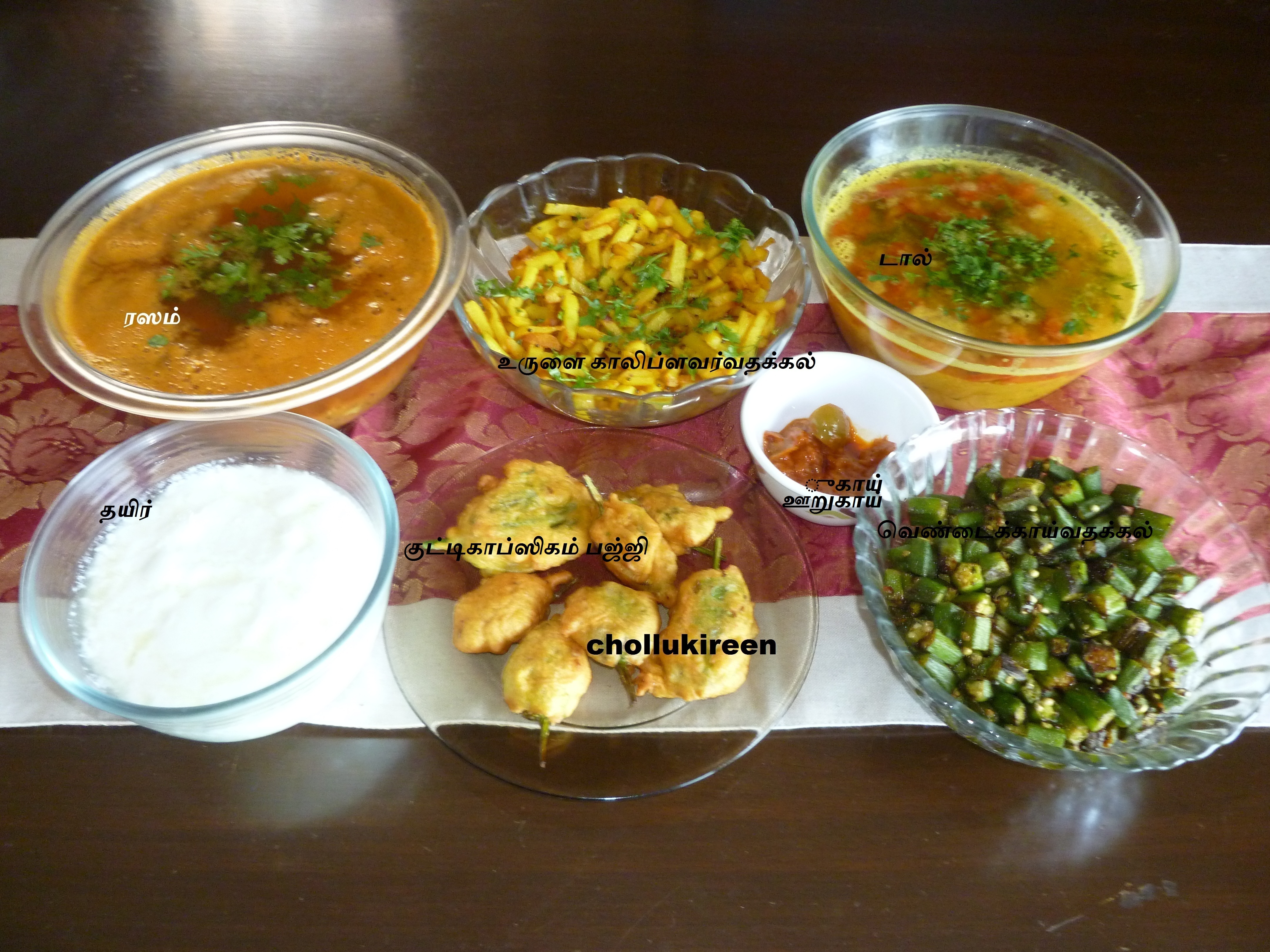ரஸமும் பொதுவான கறிகளும்கலந்து ருசியுங்களேன்.
