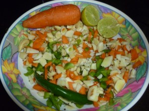 வேண்டியவைகள்—-காரட்—2 அலம்பித் தோல் சீவி பொடிப் பொடியாக