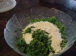 மெல்லியதாக, பொடிப் பொடியாக நறுக்கிக் கொள்ளவும். பிசைந்த
