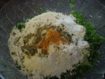 இவைகளைையும் சேர்த்துச் சப்பாத்திமாவு பதத்திற்குப் பிசையவும். தண்ணீர் சேர்க்கக் கூடாது.இது ஞாபகத்தில் இருக்கட்டும்.