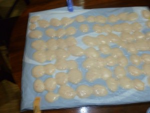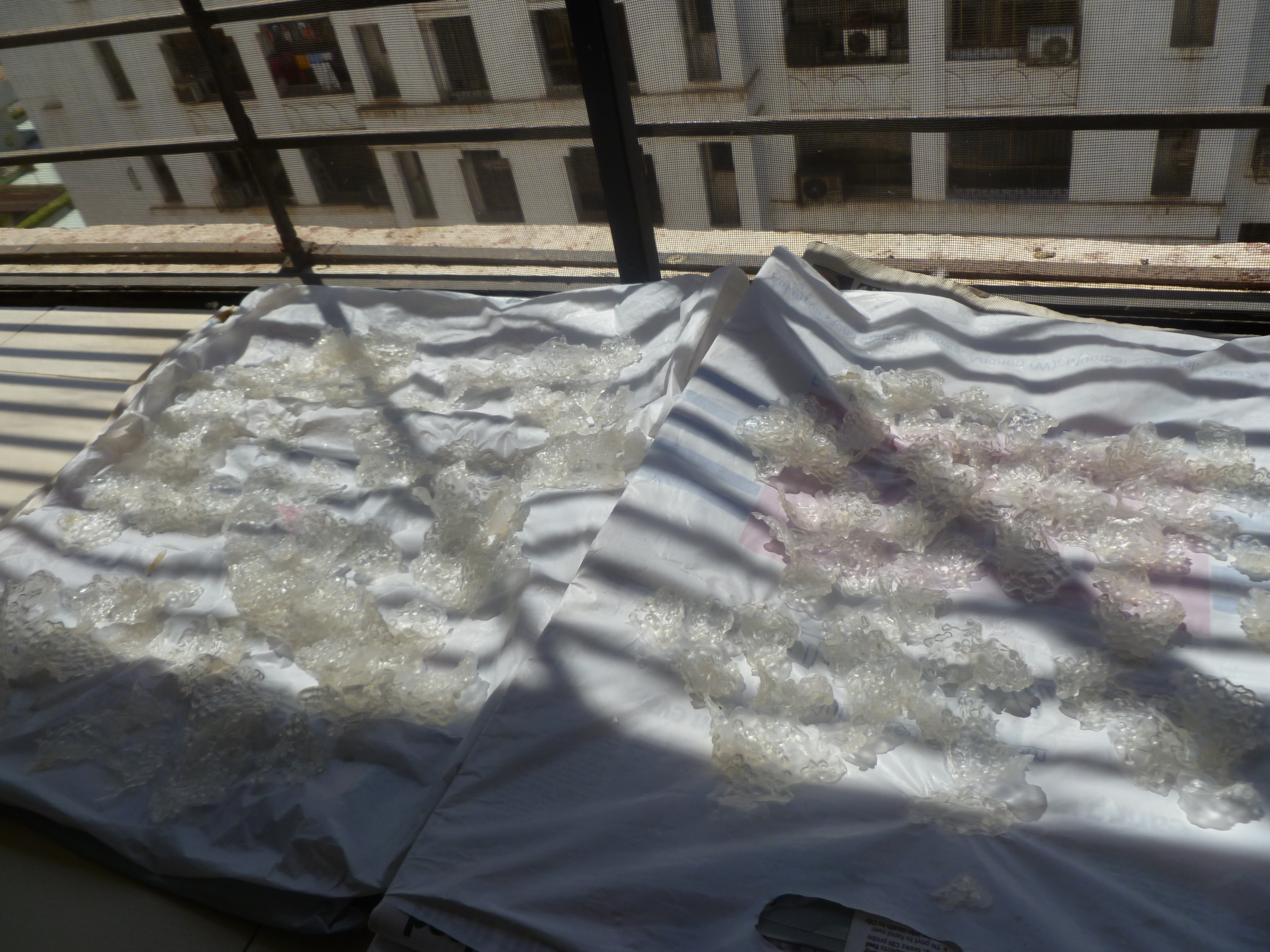 ஆறவைத்து , கையினால் பாலிதீன் பேப்பர்கள் மீது வடாம்களாக